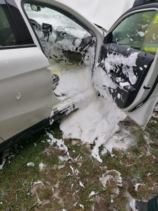 Na miejsce szybko dotarły wozy strażaków OSP Lubczyno i Bogdaniec. Strażacy do razu zabrali się za gaszenie płonącego mercedesa. Pożar został szybko opanowany.