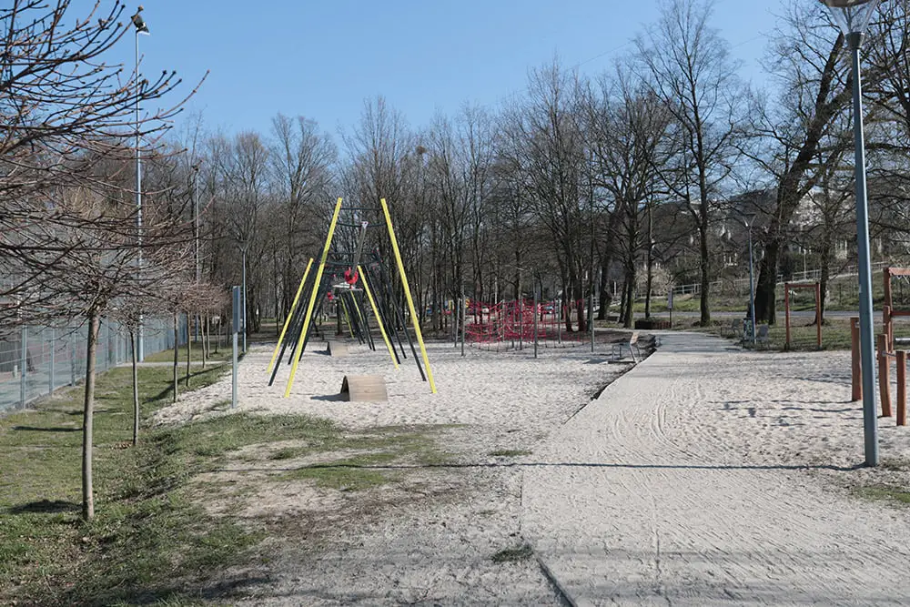Przykry widok zastaliśmy na boisku „Pod Hubą”. To kultowe miejsce zostało ogrodzone taśmą z napisem straż. Na placu zabaw ani na boisku nie było nikogo. Ludzie odpowiedzialnie podeszli do zamknięcia przez miasto placów zabaw i nie wchodzą na nie. To kolejny element walki z zagrożeniem, jakie niesie pandemia koronawirusa. Tak samo pusto było na Gęsich Tarasach. Plac zabaw puściuteńki. Nikogo nie było na boisku, którego brama wejściowa została zamknięta łańcuchem na kłódkę. Pusto było również na innych placach i placykach zabaw w mieście. Ludzie spacerowali, ale najczęściej sami lub w parze. Na ścieżkach dla rowerzystów spotkaliśmy kilka osób, jeździli samotnie.