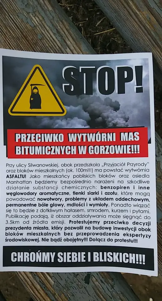 W poniedziałek mieszkańcy osiedla Magnolia Park i bloków przy ul. Walczaka w Gorzowie zablokowali przejście dla pieszych w proteście przeciwko budowie asfaltowni.