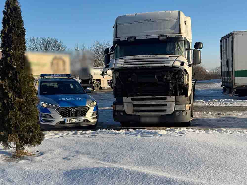 Policjanci zainteresowali się sytuacją. Na parkingu zauważyli Scanię, który miał otwartą pokrywę silnika. Funkcjonariusze w kabinie zastali 57-letniego mężczyznę leżącego pod kocem. W środku auta był szron i lód.