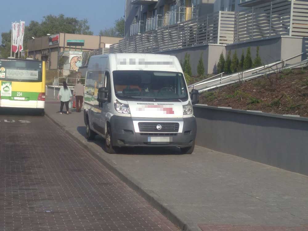 Mistrz parkowania swoim busem zastawił chodnik przy ul. Zawadzkiego Zośki. Zaparkował i zniknął, a piesi musieli obchodzić samochód.