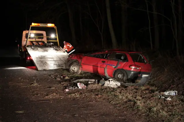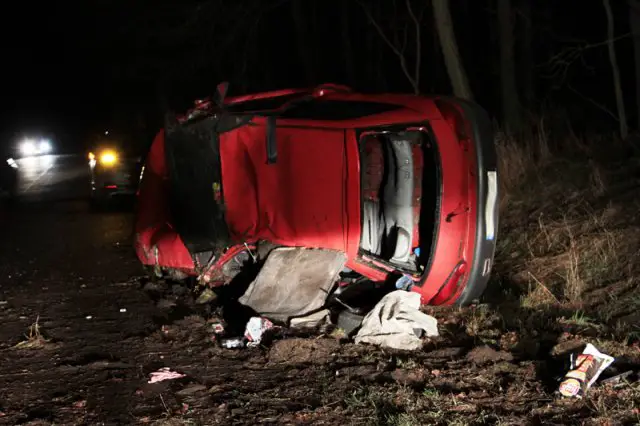 – Jechał z prędkością 120 km na godzinę – mówił pasażer mitsubishi. – Krzyknęliśmy, że na drodze jest rowerzysta, wtedy odbił na pobocze i wypadł z drogi – mówił drugi pasażer samochodu. Obaj „otarli” się o śmierć. Samochód, którym jechali wypadł z drogi i uderzył w drzewo. Potem dachował. Samochód został doszczętnie rozbity.