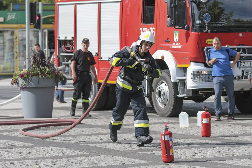 Strażacy OSP z siedmiu jednostek z terenu miasta Zielona Góra rywalizowali ze sobą na trudnym torze. W upale i w pełnym rynsztunku cięli drewno, przenosili ważącego 70 kg manekina, przesuwali młotem przeszkodę symulując wywarzanie drzwi. Musieli też trafić do celu strumieniem wody wystrzelonym z węża strażackiego.