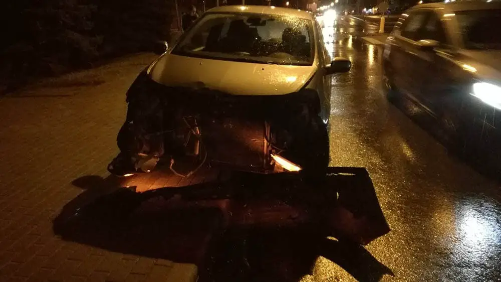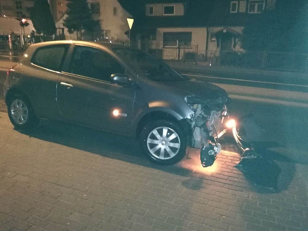 Do zderzenia doszło około godz. 22.00. Kierujący renault clio uderzył w bok hondy na środku skrzyżowania. Siła uderzenia była duża. Renault ma mocno rozbity przód, a honda bok.