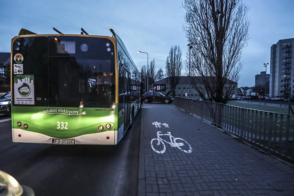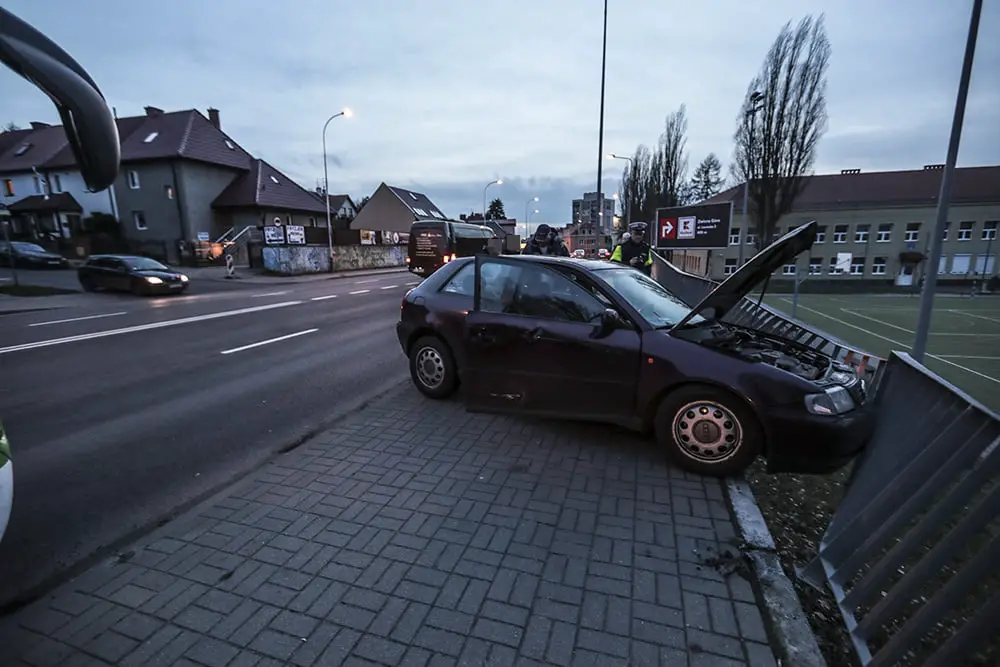 Kierująca audi podczas zmiany pasa ruchu wjechała pod autobus MZK. Po uderzeniu audi obróciło się na drodze i wypadło na chodnik. Tam samochód z dużą siłą wbił się w barierki. Na szczęści nikogo nie było na chodniku. Gdyby szedł pieszy doszłoby do tragedii. Kierująca miała dużo szczęście, bo auto nie przebiło barierek i nie spadło z wysokości. Na miejsce przyjechała zielonogórska drogówka. Zdarzenie zostało zakwalifikowane jako kolizja.