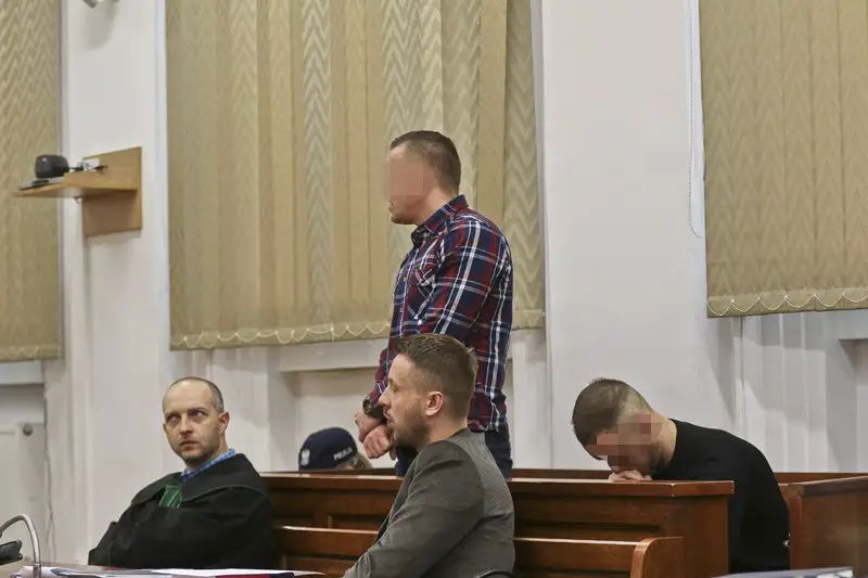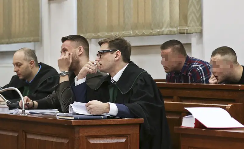 41-letni Tomasz K., 28-letni Daniel R. oraz 45-letni Krzysztof S. do sądu przyjechali z aresztu. Za kratami są od stycznia ub.r, kiedy zostali aresztowani. 24-letni Dawid K., który po napadzie wiózł samochodem Daniela R., odpowiada z wolnej stopy.