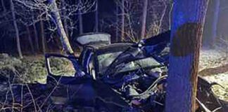 Uciekał policji, bo ma dwa zakazy prowadzenia. Rozbił się o drzewo