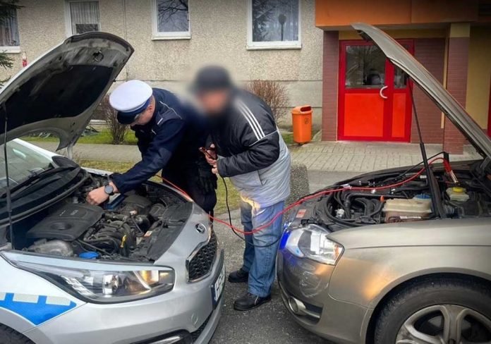 Zielonogórscy policjanci podczas patrolu na jednym z osiedli, zauważyli starszego mężczyznę, który miał problem z odpaleniem swojego auta, bo rozładował mu się akumulator. Policjanci ustawili obok radiowóz, otworzyli maskę, podłączyli kable i pomogli mężczyźnie uruchomić silnik.