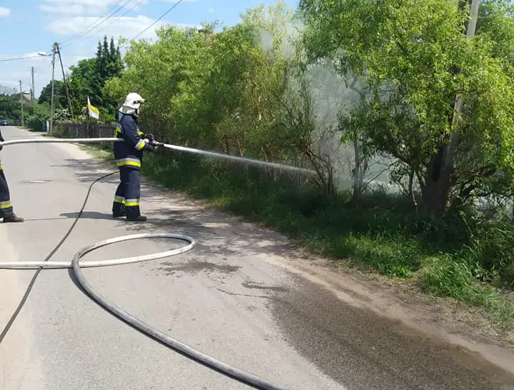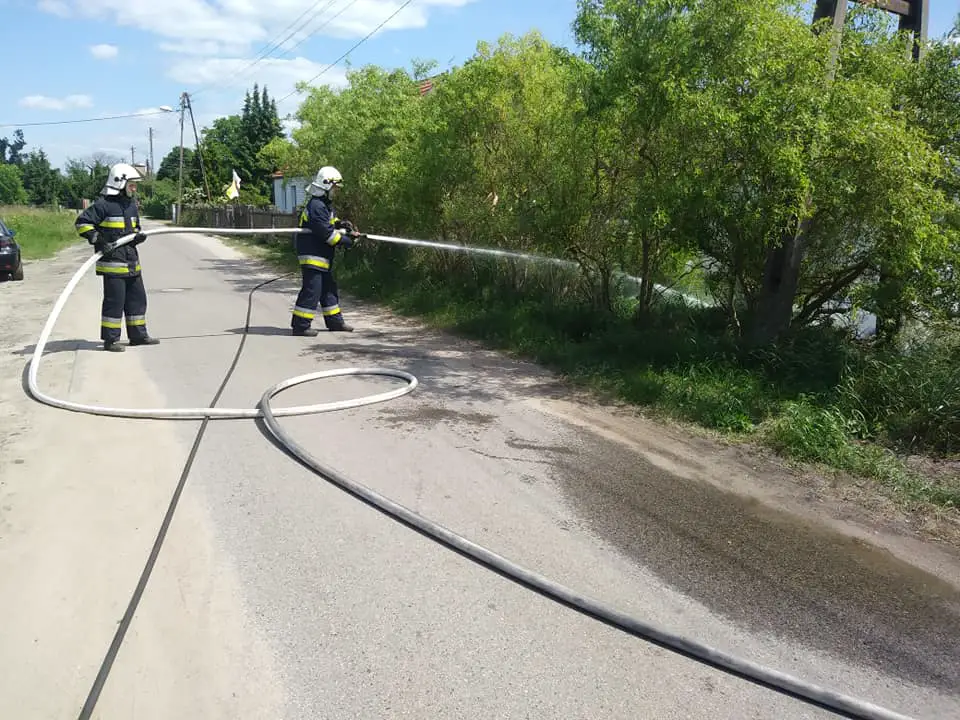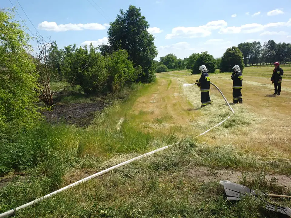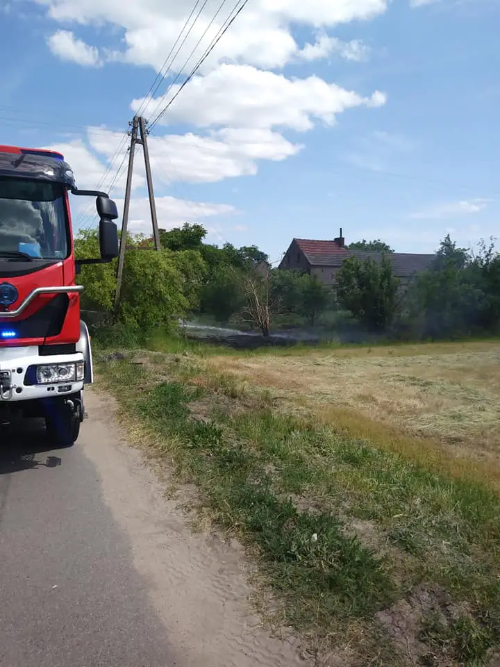Przewody stykając się z suchą trawą zapaliły ją. Strażacy OSP opanowali sytuację i zgasili pożar.