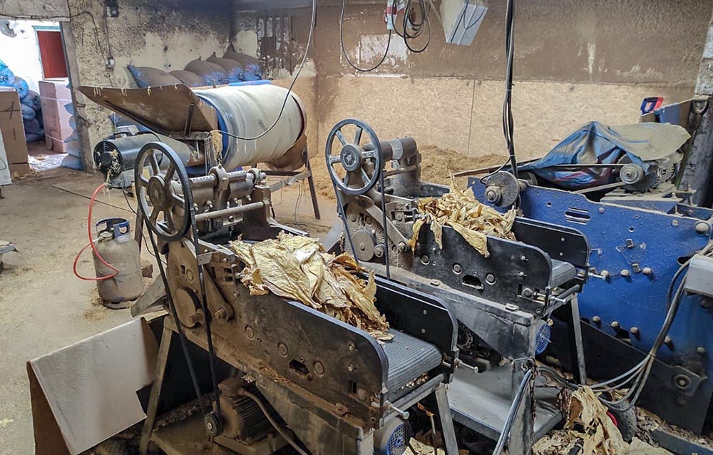 W pomieszczeniach były maszyny służące do suszenia i rozdrabniania tytoniu, a także kartony z liśćmi tytoniu. Był tam również rozdrobiony susz oraz worki z gotową krajanką.