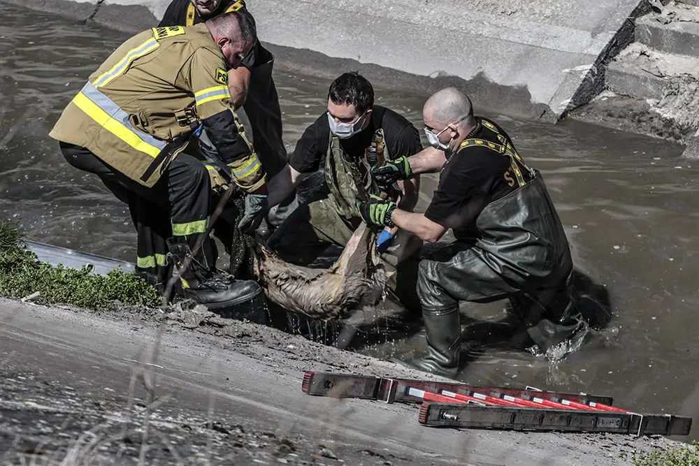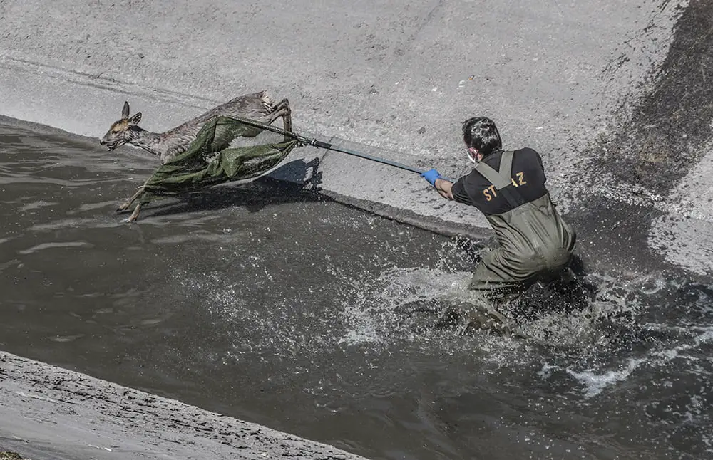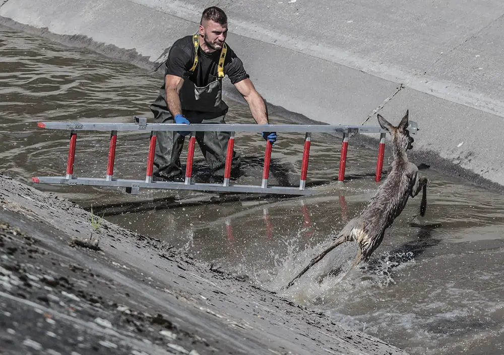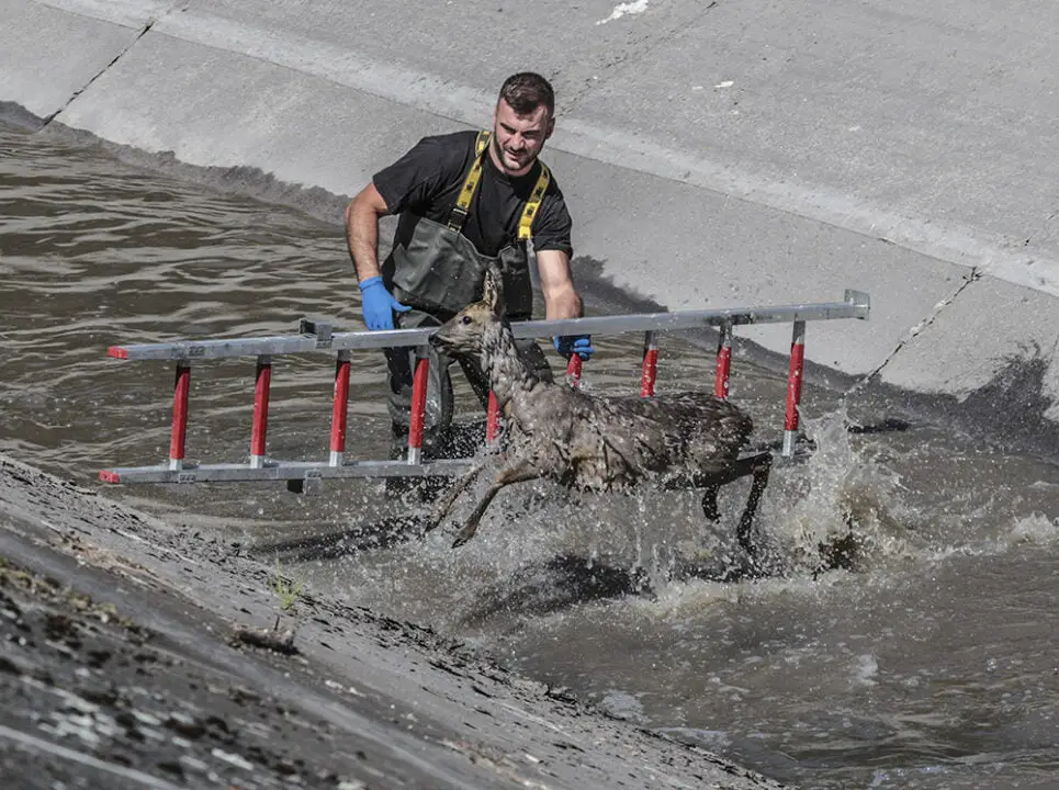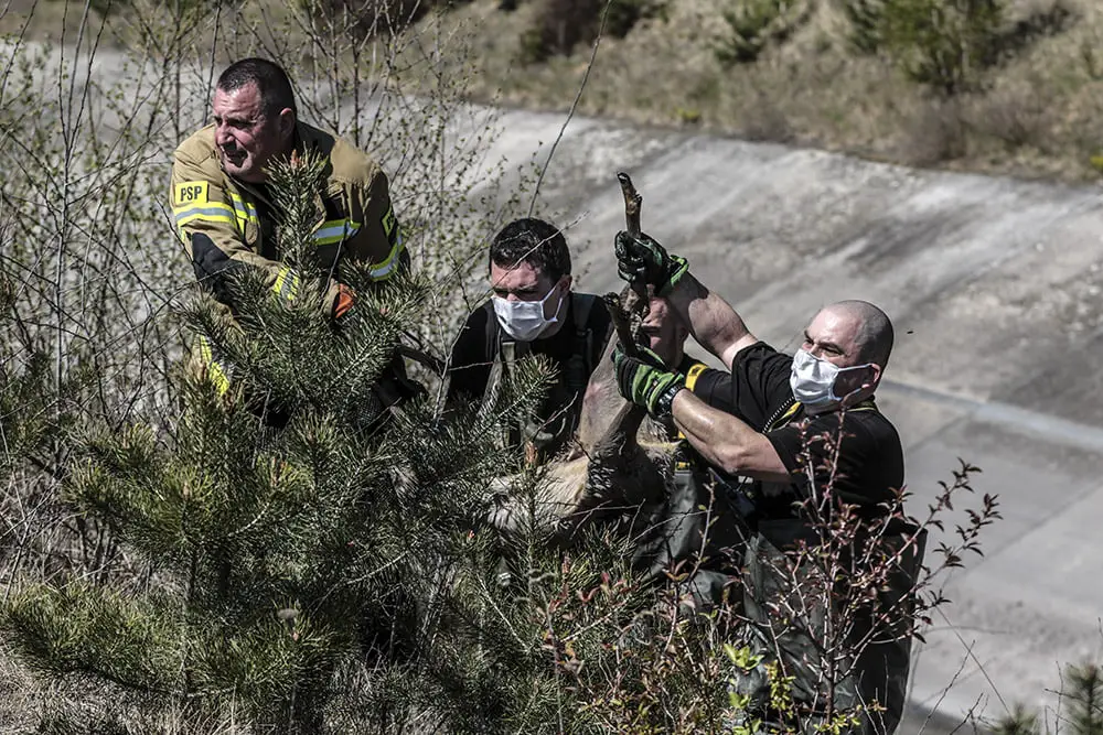 Sana została zauważona przez osobę, która spacerowała wzdłuż kanału. Zwierzę nie było w stanie samodzielnie wydostać się ze stromego kanału. Na miejsce zostali wezwania strażacy. Szybko nad kanał dojechał wóz strażacki i ruszyła akcja ratunkowa. Strażacy starali się zagonić sarnę w okolicę schodów. To nie było jednak łatwe. Zwierzę kilka razy szarżowało na strażaków z drabiną i mijało zaporę. Sarna było bardzo zmęczona. Po ponad niemal godzinnej akcji strażakom udało się schwytać dzikie zwierzę. Wyciągnęli sarnę z kanału i zanieśli do lasu. Tam bezpiecznie i szybko zniknęła między drzewami. – To była trudna akcja, Dzikie zwierzę nie jest łatwe do schwytania, ale na szczęście udało się – mówi st. asp. Bogdan Sołoduchin, zastępca dowódca zmiany jednostki ratowniczo-gaśniczej nr 2. Strażacy co jakiś czas ratują dzikie zwierzęta z kanału burzowego. – Za każdym razem to są bardzo trudne akcje. Na szczęście zawsze skuteczne – mówi st. kpt. Arkadiusz Kaniak, rzecznik straży pożarnej w Zielonej Górze.