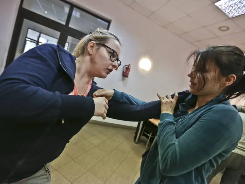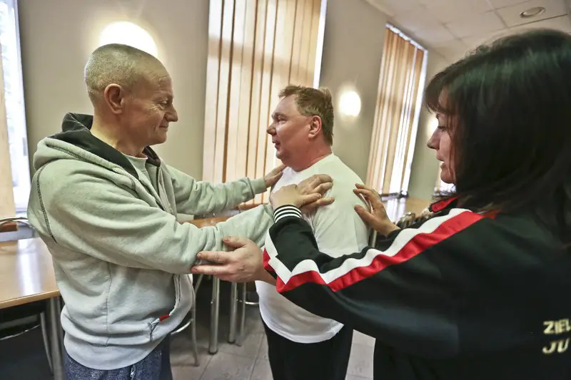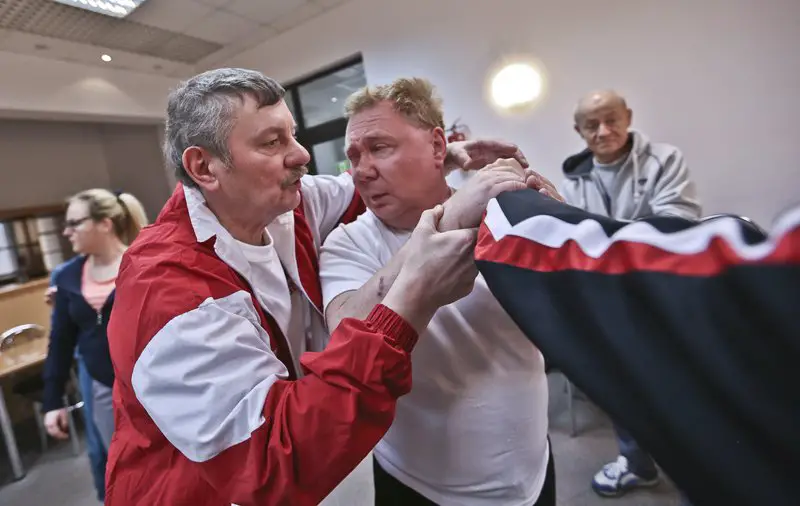 Chętnych do udziału w szkoleniu nie zabrakło. – To daje mi większą pewność siebie – przyznaje Dariusz Kuciński, uczestnik szkolenia. Razem z Wojciechem Jędrejem uczy się samoobrony pod okiem mistrza ju jitsu Eugeniusza Sikory. I trzeba przyznać, że nie ma dla nich żadnej taryfy ulgowej. Jest za to wycisk i powtarzanie chwytów oraz dźwigni.