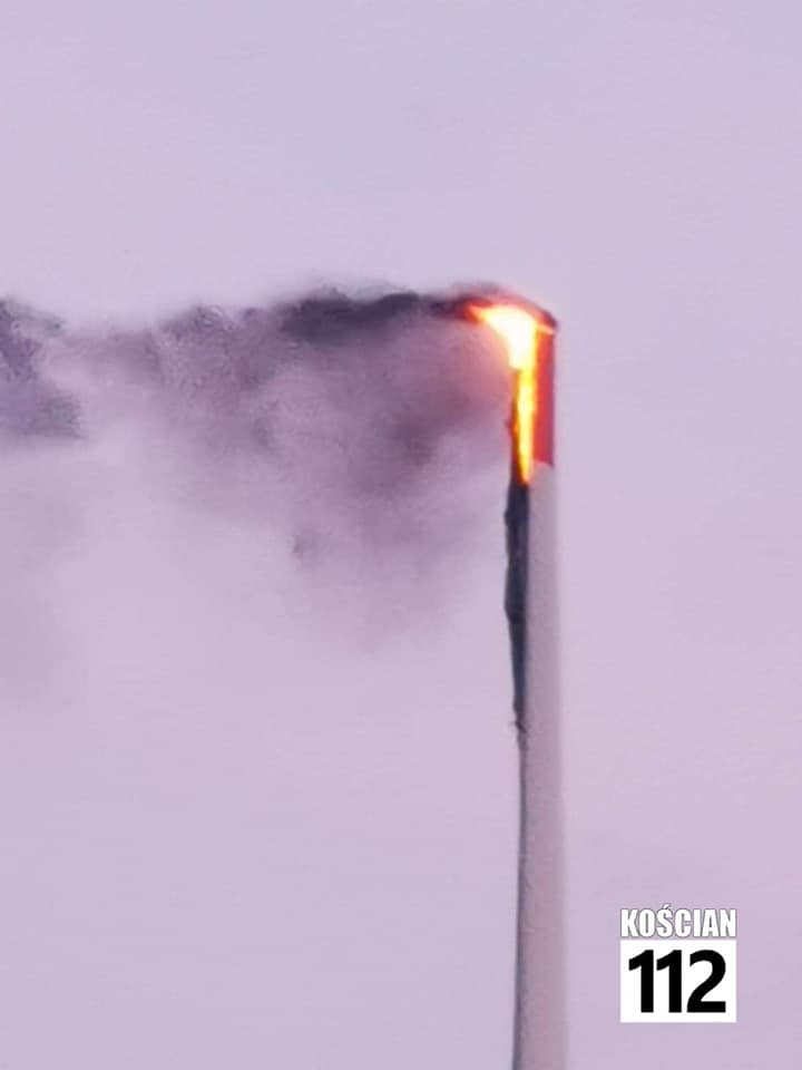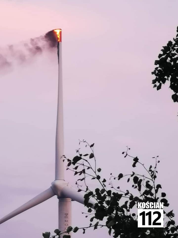 Pożar wiatraka wybuchł w poniedziałek, 20 lipca, w Ciałkowie (woj. wielkopolskie). Płonęło skrzydło na wysokości ok. 180 m. Pożar powstał od uderzenie pioruna podczas burzy, która przechodziła nad miejscowością.