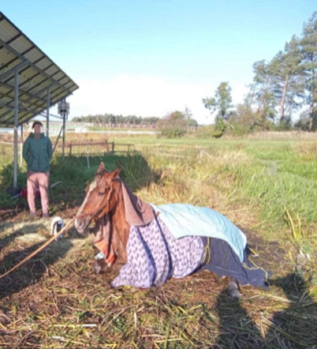 Na miejsce zdarzenia zadysponowano także ciągnik rolniczy, a następnie podjęto kolejną próbę wyciągnięcia zwierzęcia, która zakończyła się całkowitym uwolnieniem konia. Zwierzę zostało wytarte ręcznikami, okryte kocami oraz zastosowano ogrzewacze chemiczne na powierzchnię ciała zwierzęcia. Po około 30 minutach koń doszedł do siebie i zadowolonym krokiem pomaszerował do stajni.