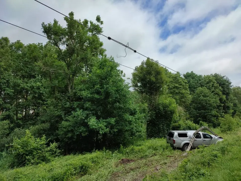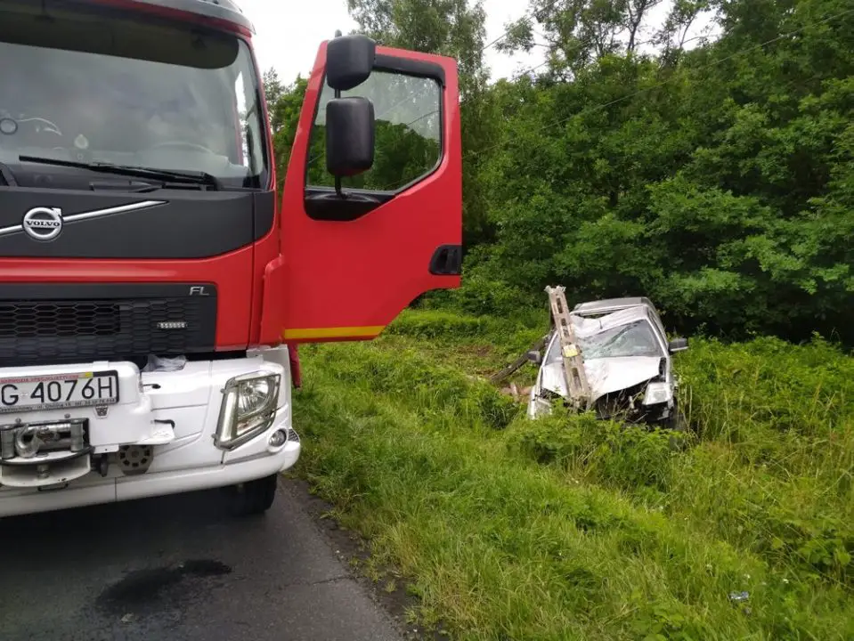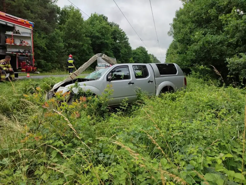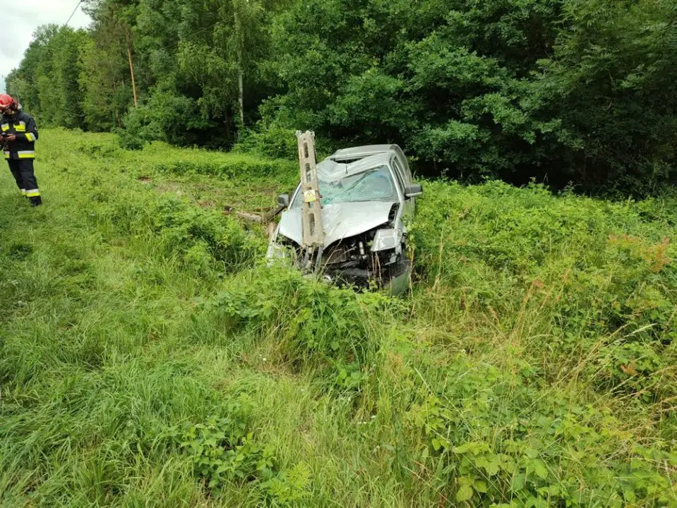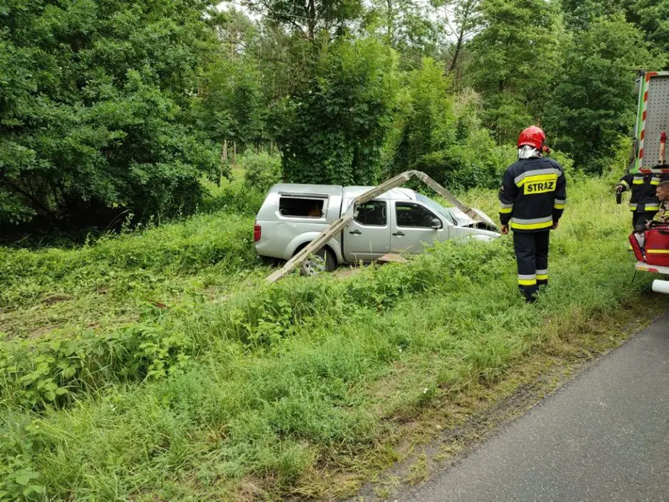 Wszystko wydarzyło się kilka dni temu. Kierujący nissanem zjechał na przeciwny pas ruchu i wypadł z drogi. Samochód uderzył w słup z linią średniego napięcia łamiąc go.