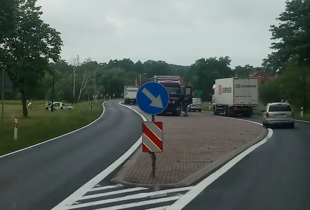 Do groźnie wyglądającego zdarzenia doszło w czwartek, 13 czerwca, na trasie w Gronowie koło Krosna Odrzańskiego. Kierujący nissanem uderzył w ciężarówkę i wypadł z drogi. Miał szczęście, nic mu się nie stało.