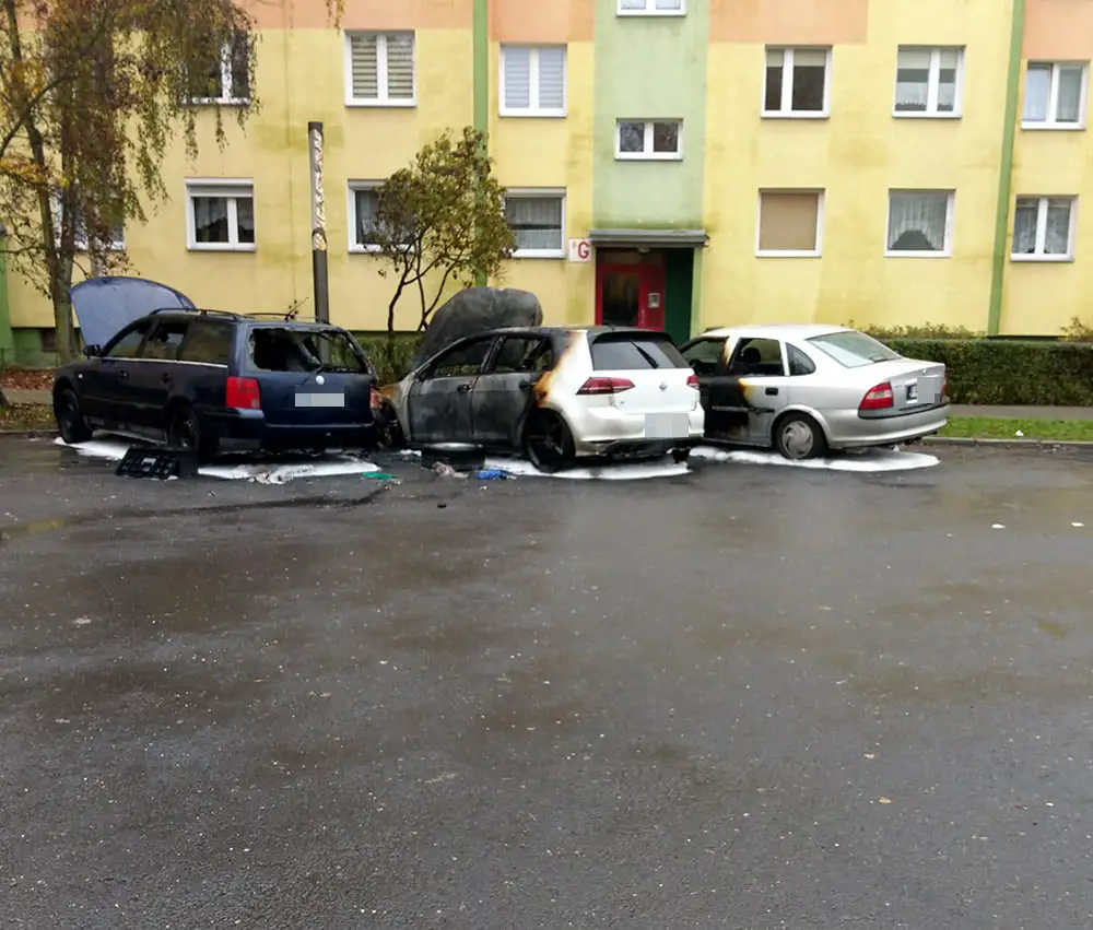 Pożar wybuchł w środę, 13 listopada, nocą. Mieszkańcy os. Konstytucji 3 Maja zobaczyli plomienie na parkingu po blokami. Na miejsce została wezwana straż pożarna. Kiedy strażacy dojechali na parking samochody były już w ogniu. Strażacy poradzili sobie z pożarem. Niestety płomienie zniszczyły trzy samochody. To dwa volkswageny i opel. Przyczynę pożaru pożaru samochodów ustalać nowosolscy policjanci.