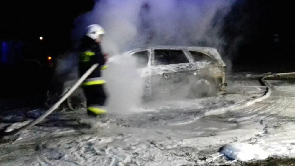 Nocą straż pożarna dostała zgłoszenie pożaru bazaru w Łęknicy. Na miejsce natychmiast przyjechało kilka strażackich jednostek. Na miejscu okazało się, że płonie samochód na parkingu przy bazarze. Mercedes był już cały w ogniu. Strażacy OSP Łęknica szybko opanowali pożar. Niestety samochód spłonął doszczętnie. Przyczynę pożaru ustalać będzie policja.