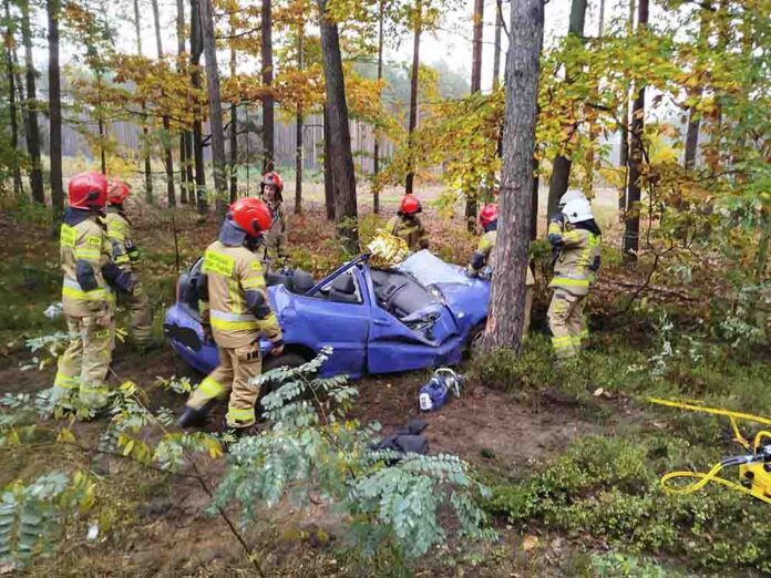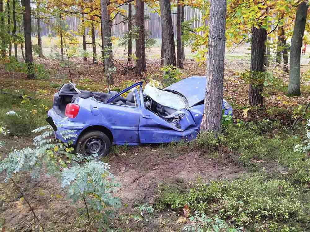 Do zdarzenia doszło w środę, 15 października, na trasie Lipiny-Przyborów. Kierujący volkswagenem 19-latek, jadąc z nadmierną prędkością, wpadł w poślizg. Samochód wypadł z drogi i roztrzaskał się o drzewo. Na miejsce dojechały wozy strażaków z Nowej Soli oraz OSP Przyborów. Dojechała również karetka pogotowia ratunkowego oraz nowosolska policja. Strażacy musieli rozcinać karoserię samochodu, żeby dostać się do 19-latka. Siła uderzenia w drzewo była tak duża, że volkswagen zgiął się.