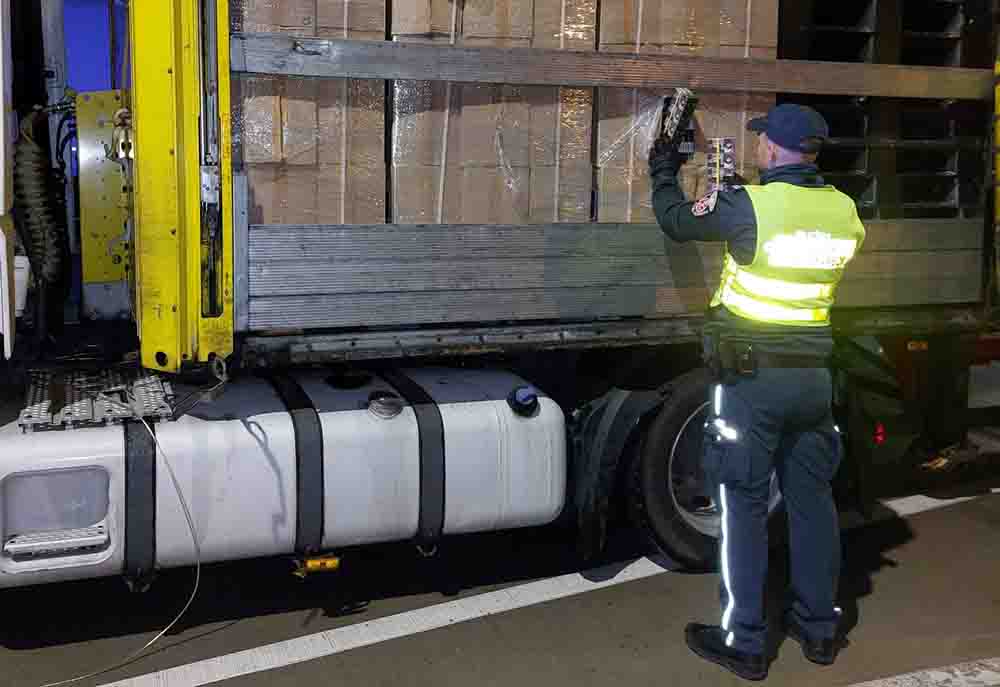 Funkcjonariusze SCS z lubuskiej KAS prowadzili kontrolę na drodze ekspresowej S3. Około północy za pomocą sygnałów świetlnych i dźwiękowych skierowali do kontroli ciężarówkę jadącą z Głogowa do Danii. Kierowca deklarował, że wiezie makaron, tymczasem podczas rewizji przestrzeni ładunkowej naczepy i otwarciu jednego z kartonów funkcjonariusze znaleźli papierosy bez polskich znaków akcyzy. Po przeszukaniu całego pojazdu lubuscy funkcjonariusze znaleźli 1 mln 440 tys. szt. papierosów.