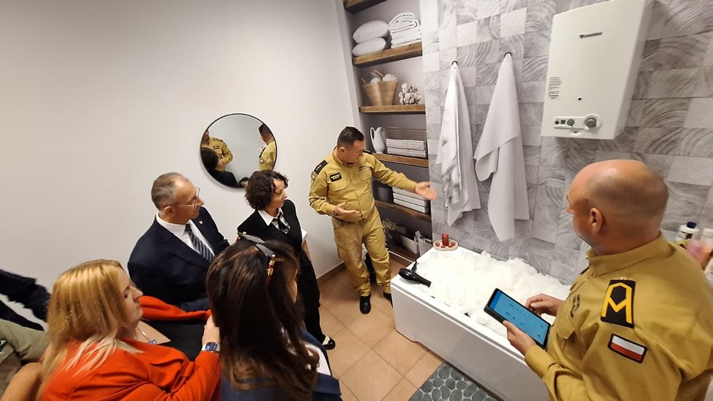 – Czym skorupka za młodu nasiąknie, tym na starość trąci. Sala „Ognik” pozwala dzieciom zobaczyć, jak wyglądają realne zagrożenia i nauczyć się odpowiednich zachowań – mówił Wojewoda. Zmodernizowana przestrzeń oferuje realistyczne moduły, las i jezioro, łazienkę oraz kuchnię.
