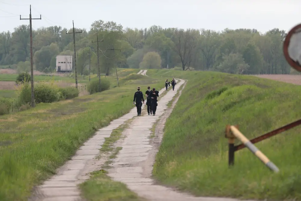 Z różnych dróżek z lasu i pól schodzą się grupki mundurowych. Łyk wody i idą dalej w teren. Jest bardzo ciepło, ale na późny wieczór zapowiedziano burze z wichurami i gradobiciem. Wtedy sytuacja będzie ciężka.