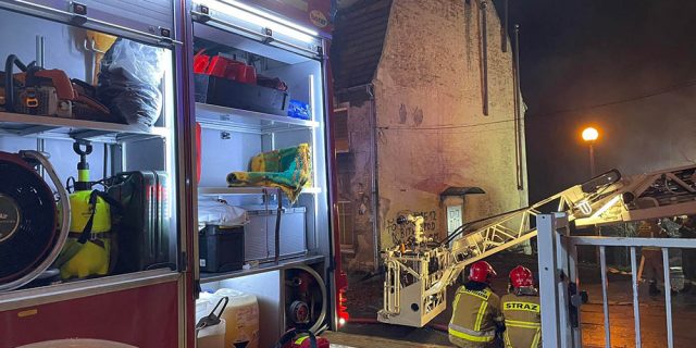 Pożar wybuchł w poniedziałek, 3 stycznia, w kamienicy przy ul Wąskiej. Płonie już całe poddasze. Na miejscu trwa walka z ogniem.