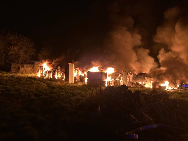 Ogromny Pożar na posesji w Budzigniewie wybuchł w sobotę, 10 kwietnia, po godz. 22.00. W ogniu stanęło około 300 pralek oraz lodówek zebranych na składowisku. Ogień zaczął również zajmować dom.