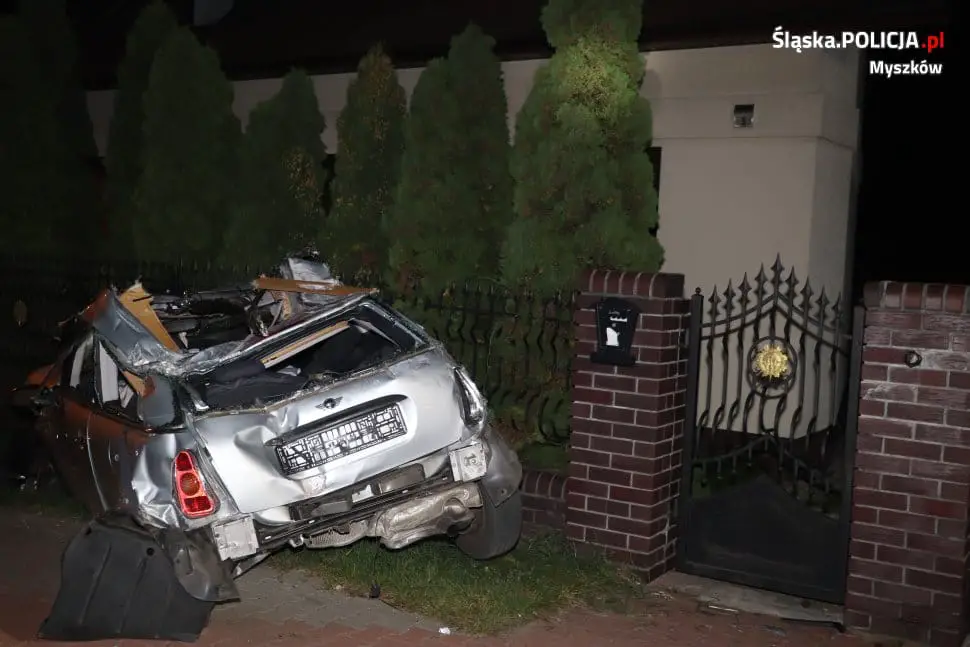 Ze wstępnych ustaleń policji wynika, że kierujący mini 23-latek z pasażerem w wieku 26 lat jechali w kierunku Przybynowa. Nagle zjechali na prawe pobocze i uderzyli w ogrodzenie posesji. Samochód odbił się i koziołkował uderzając w ogrodzenie innej posesji.
