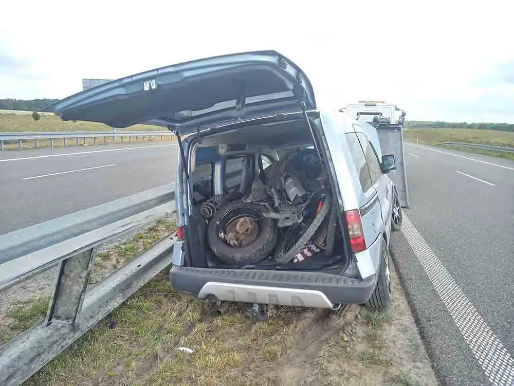 Kierujący oplem combo jechał trasą S3 w kierunku Szczecina. Nagle ostro zjechał z drogi i uderzył w barierki. Siła uderzenia była tak duża, że z auta odpadły dwa koła, a przód został mocno rozbity. Na miejsce dojechała gorzowska policja. Na szczęście nikomu nic się nie stało. Kierujący oplem wyjaśniał, że zasnął podczas jazdy. Rozbity samochód z trasy S3 odholowała pomoc drogowa Baryła z Gorzowa.