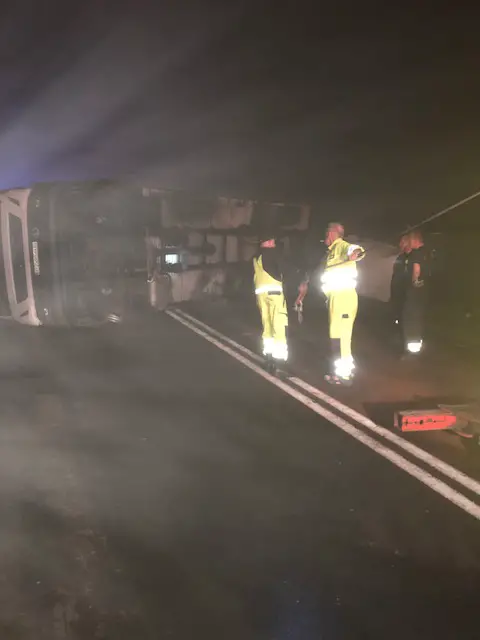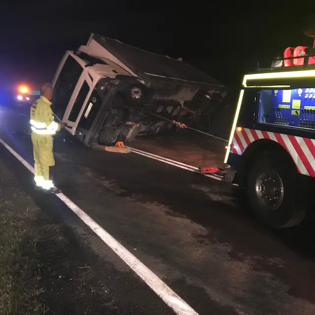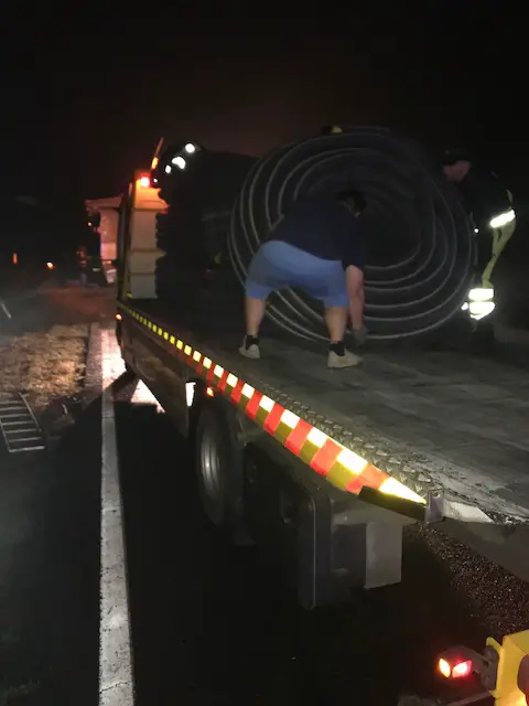 Ciężarówkę przed podniesieniem trzeba było rozładować. Akcja trwała do godz. 3.00 w sobotę, 8 września, nocą. Droga jest już przejezdna.