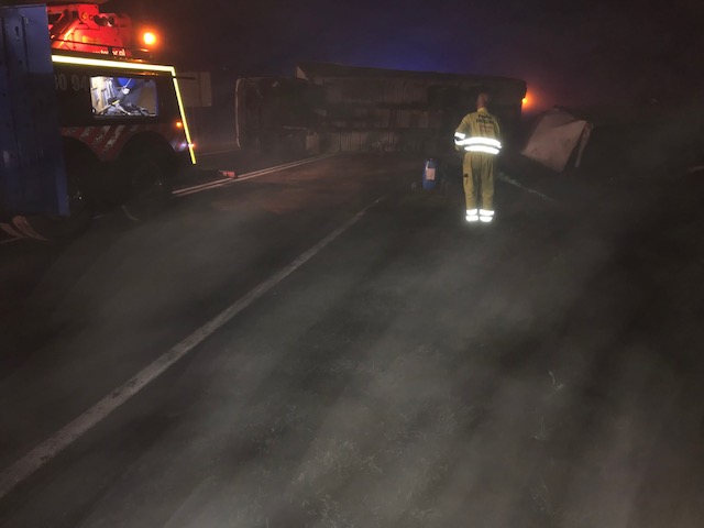 Do wypadku doszło na trasie pod Gubinem. Kierujący samochodem osobowym wjechał pod prawidłowo jadącą ciężarówkę. Samochód ciężarowy wywrócił się. Ranny kierowca ciężarówki trafił do szpitala.