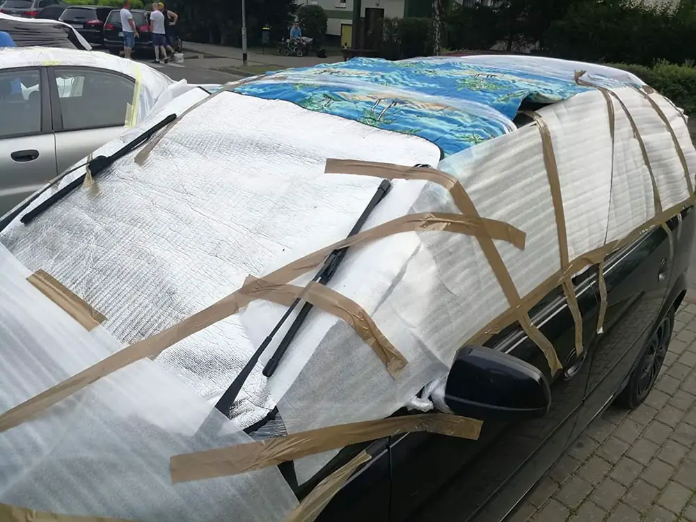 Niecodzienne widoku można dziś zastać w środę, 12 czerwca, wieczorem na parkingach w Gorzowie. Samochody są oklejone grubą folią, kocami, kartonami i tekturą. Tak gorzowianie chcą zabezpieczyć swoje samochody przed zapowiadanym gradobiciem.