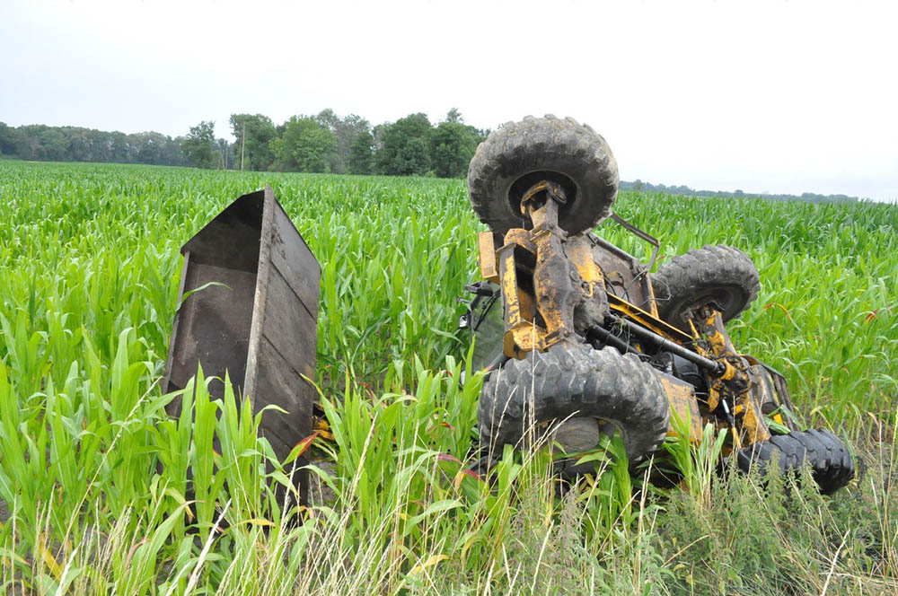 Około 3 kilometrów od miejsca kradzieży złodziej pechowo dla siebie wpadł w poślizg i rozbił się ładowarką. Uciekł przed przyjazdem policji porzucając w rowie przewróconą na dach maszynę. Sprawca kradzieży ukrył się przed policją.