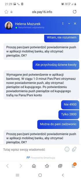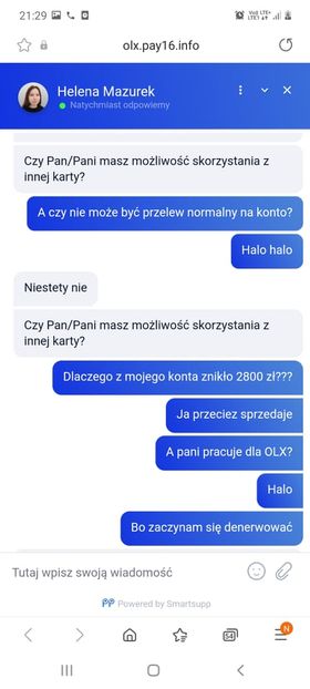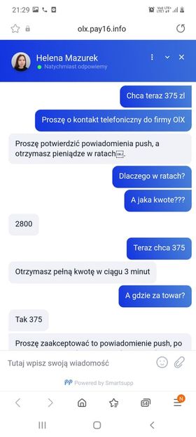 Zaraz po wystawieniu na OLX urządzenia thermomix z zielonogórzanka skontaktowała się Heleną Mazurek. Kupująca to Anna Benarczyk. Do sprzedającej napisali już przez whatsapp.