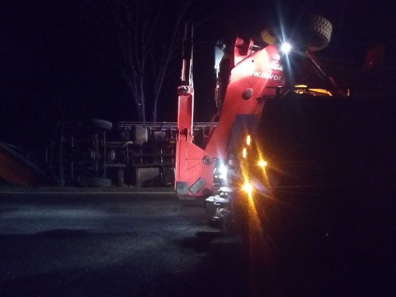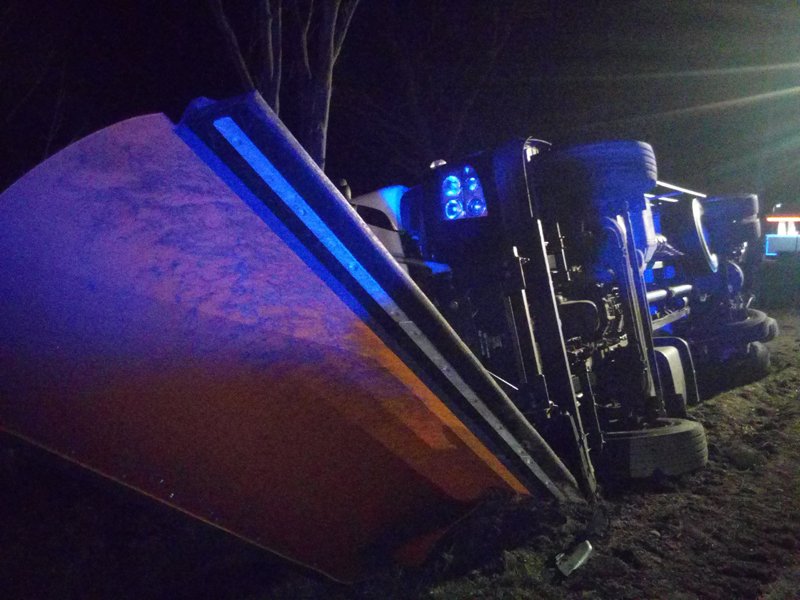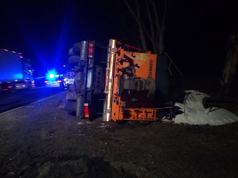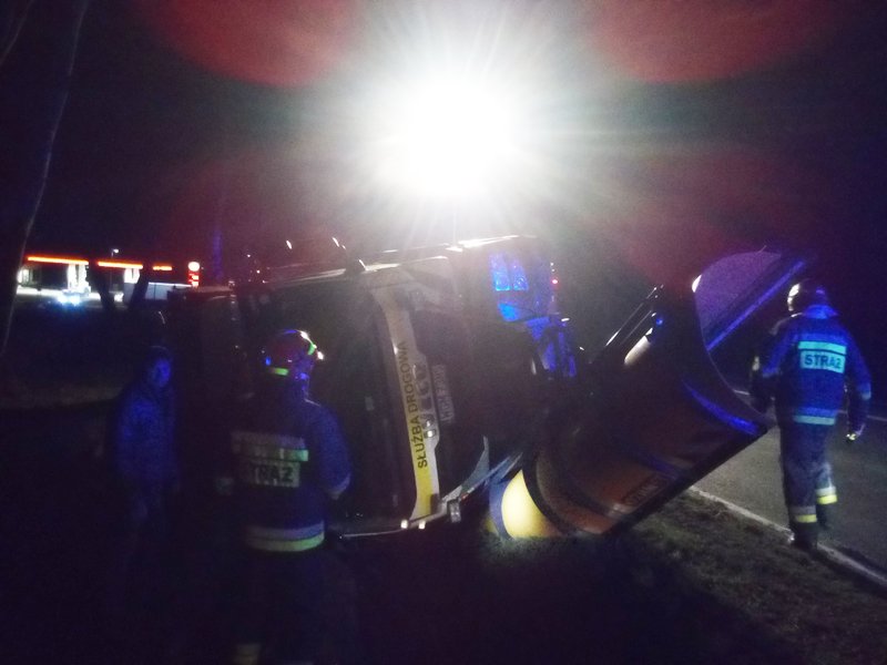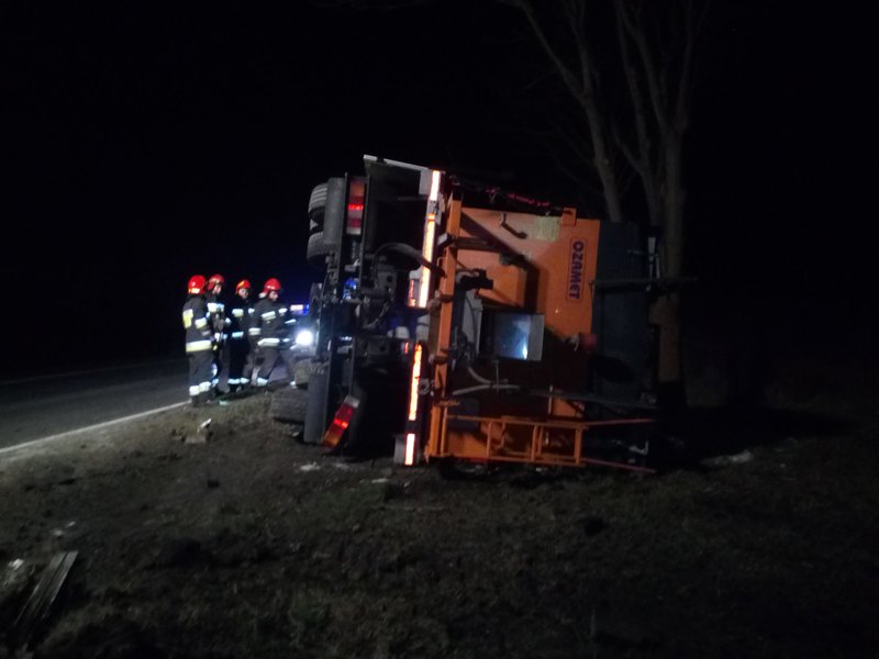 Piaskarka nocą posypywała drogi. W pewnym momencie na trasie w Osiecznicy piaskarka z pługiem wpadła w poślizg. Samochód wypadł z drogi i przewrócił się.