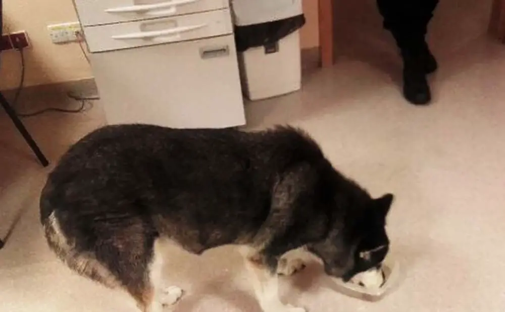 Z uwagi na duży ruch i panujący zmrok, a przede wszystkim związane z tym ryzyko potrącenia, policjanci zaopiekowali się psem. Radiowozem husky został przewieziony do strzeleckiej komendy. Tutaj mundurowi podzielili się z czworonogiem kanapką. Piesek dostał wodę.