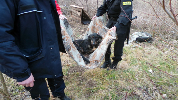 Na miejsce wezwany został pracownik magistratu i powiatowy lekarz weterynarii. Lekarz stwierdził, że pies jest odwodniony, niedożywiony oraz w bardzo złym stanie i wymaga natychmiastowego przewiezienia do lecznicy.