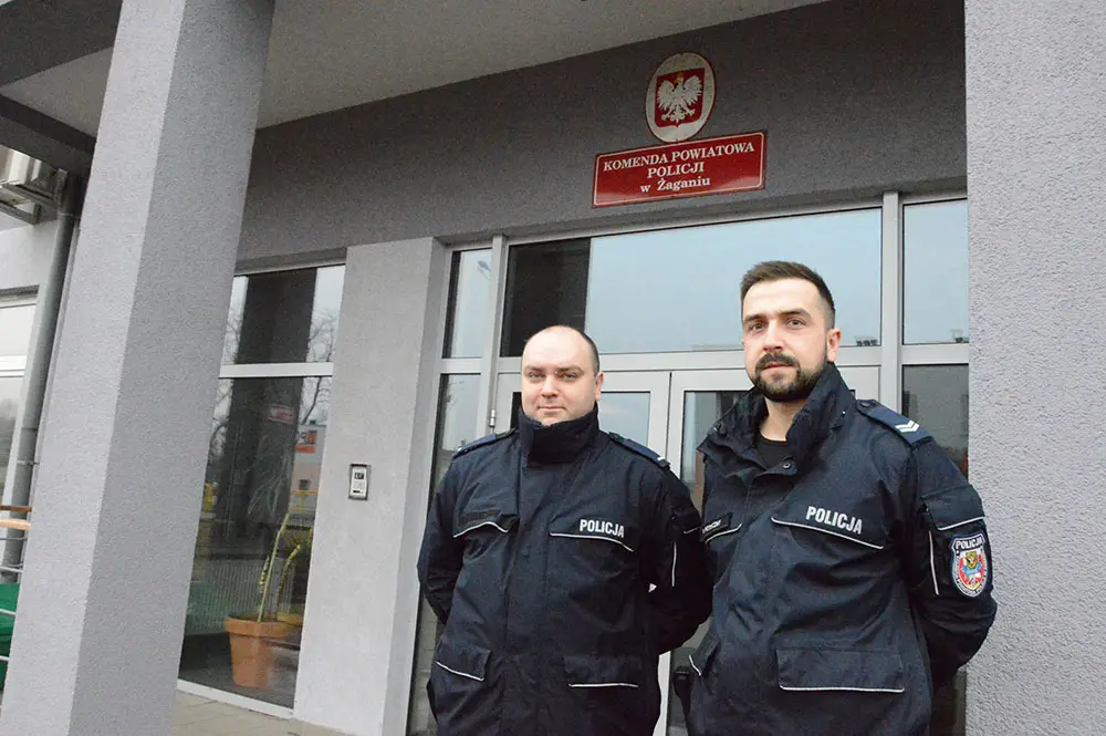 Żagańscy policjanci st. sierż. Paweł Potoczny i st. post. Sebastian Sokołowski podczas interwencji okryli swoimi kurtkami psa, który przymarzł do ziemi. Ogrzali zwierzaka w ciepłym radiowozie, nakarmili, dali wodę i odwieźli do przytuliska dla zwierząt.