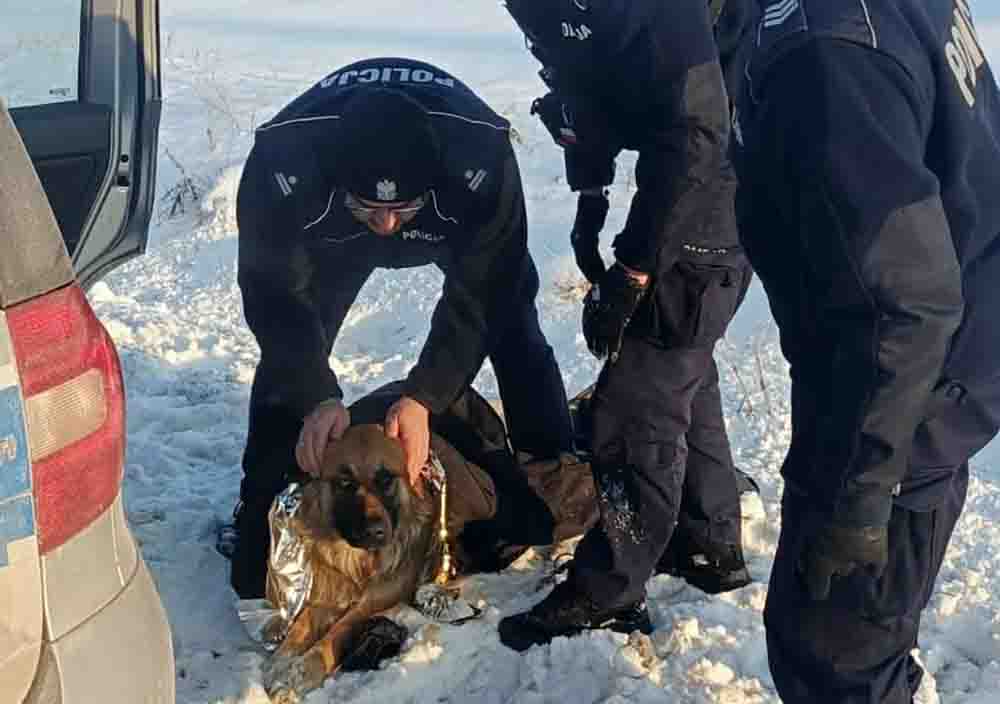 Policjanci uratowali życie psa, który przymarzł do pobocza drogi w Przysowach (pow. przasnyski). Osłabione i wychłodzone zwierzę zostało uwolnione z lodu, okryte kocem termicznym i odzieżą funkcjonariuszy, nakarmione, a następnie przewiezione do weterynarza.