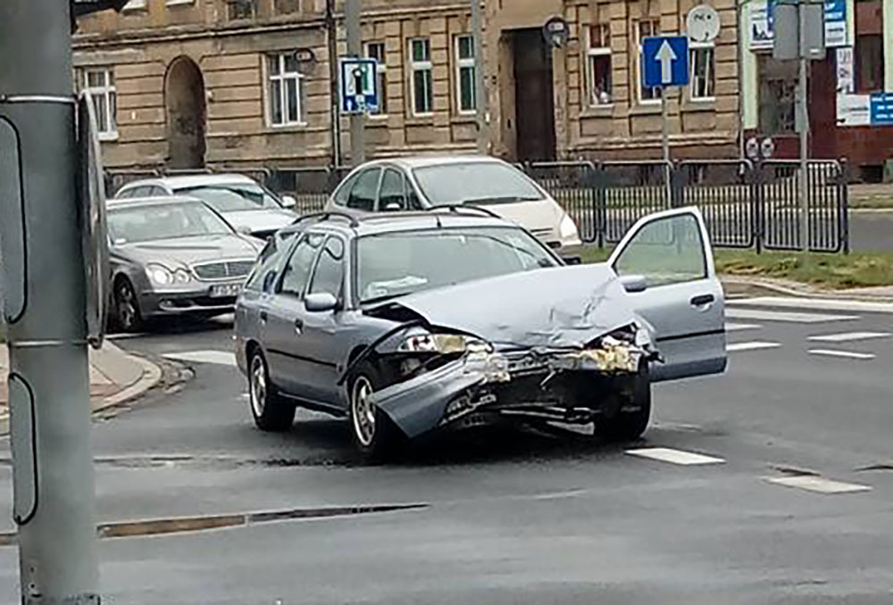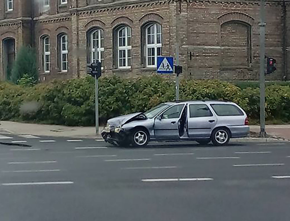 Kierujący fordem na skrzyżowaniu ulic Grobla i Woskowej uderzył w mazdę. Nie zatrzymał się tylko zaczął uciekać. Daleko nie odjechał. Wypadł z drogi na chodnik. Tam chciał wysiąść z auta i uciekać. Zatrzymali go świadkowie, którzy na miejsce wezwali policję. Młody kierowca forda był agresywny. Szarpał się z osobami, które nie pozwoliły mu uciec.
