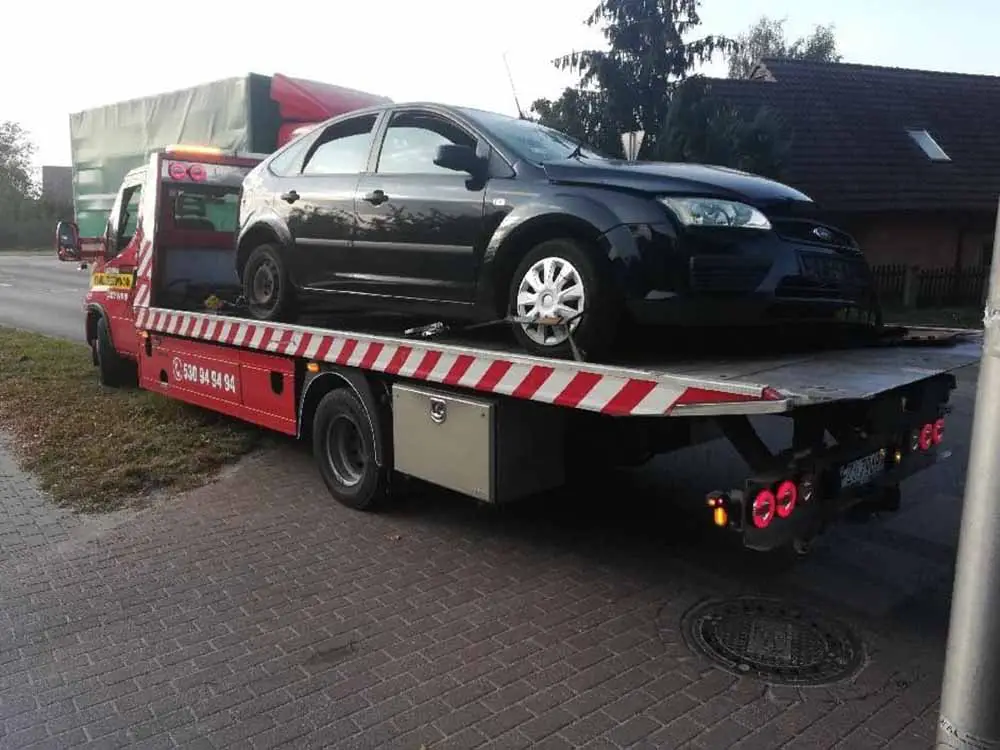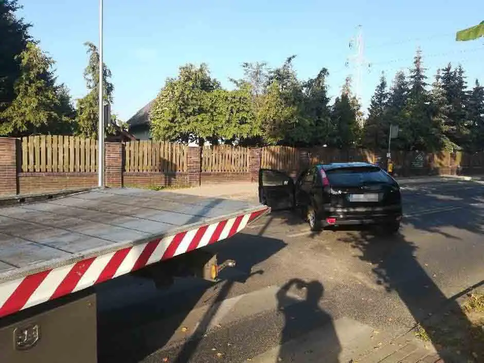 Godz. 9.50 Samochód pijanego kierowcy został już odholowany z ul. Kożuchowskiej. Pojazd na plecenie policji zabezpieczyła pomoc drogowa Maxamr.