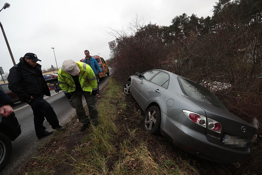 Do niebezpiecznego zdarzenia doszło w czwartek, 6 lutego, na ul. Zachodniej tuż przy skrzyżowaniu z ul. Łużycką. Pijany kierowca mazdy wypadł z drogi i tylko cudem nie stoczył się na ogródki działkowe.
