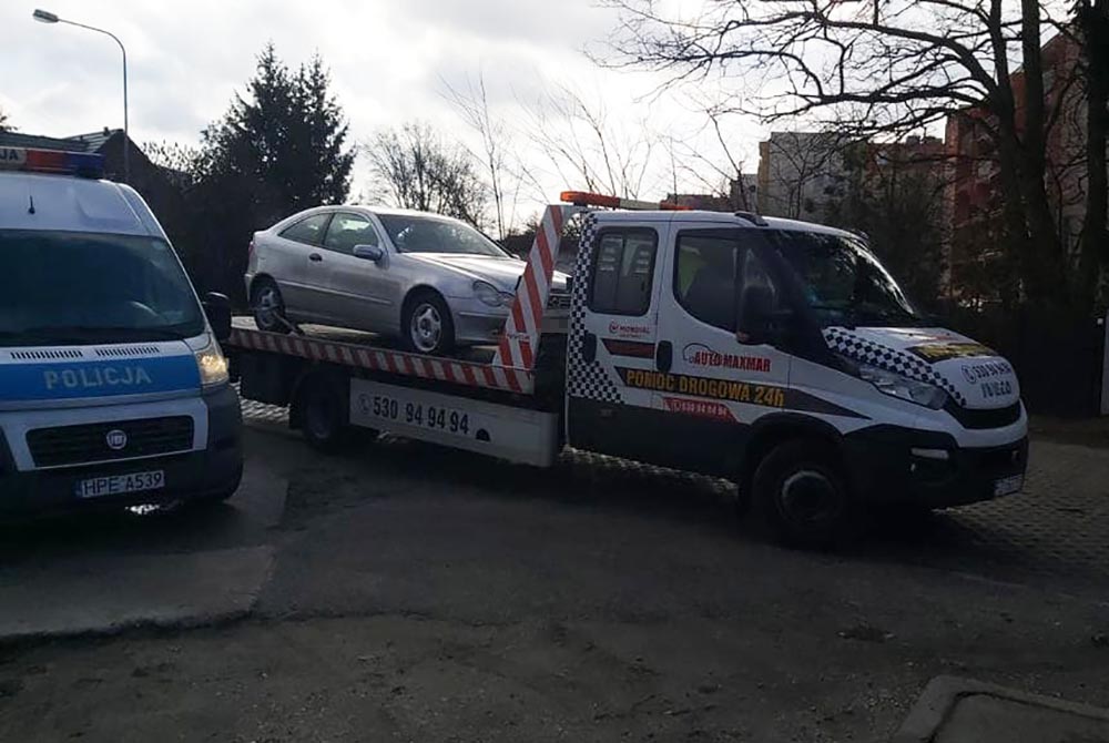 Na polecenie policji mercedesa pijanego kierowcy zabezpieczyła pomoc drogowa Maxmar. Koszty holowania spadną na właściciela samochodu.