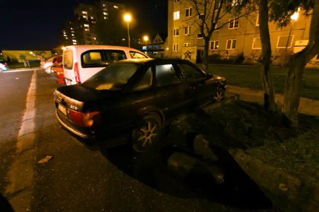 Mężczyzna wsiadł w audi 80. Wyjechał z parkingu przy ul. Wojska Polskiego. Uszkodził zaparkowaną toyotę i pojechał dalej. Szalał na parkingu nie mogąc znaleźć wyjazdu. W pewnej chwili bokiem uderzył w betonowy klomb z zasadzonym drzewem.