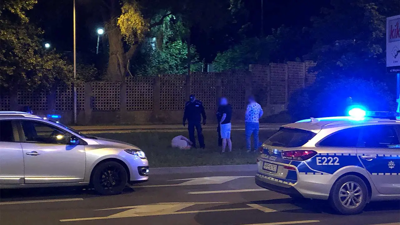 Na miejsce zdarzenia przyjechała wezwana zielonogórska policja oraz kartka pogotowia ratunkowego. Jak się okazało sprawca wypadku jest pijany. Funkcjonariusze skuli kajdankami mężczyznę, który był agresywny.