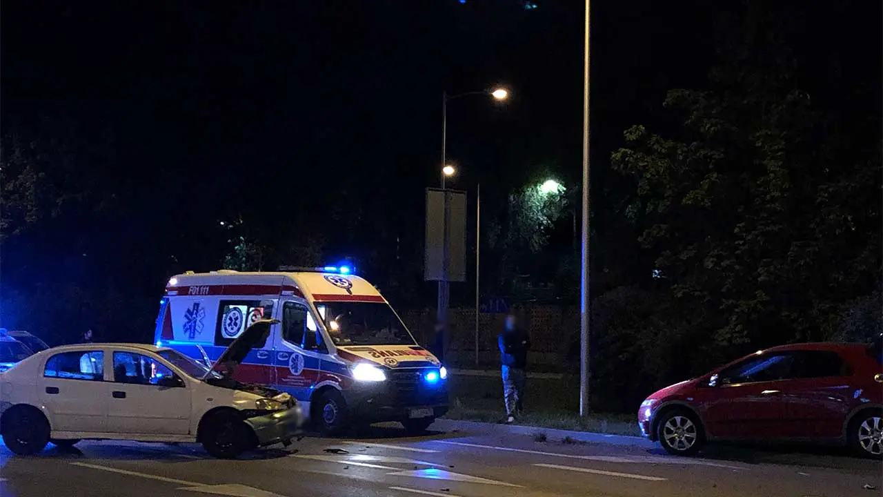 Kierujący oplem jechał ul. Wojska Polskiego w kierunku ronda PCK. Uderzył w jadący obok samochód. Po zderzeniu honda wypadła z drogi i zatrzymała się na pasie zieleni.
