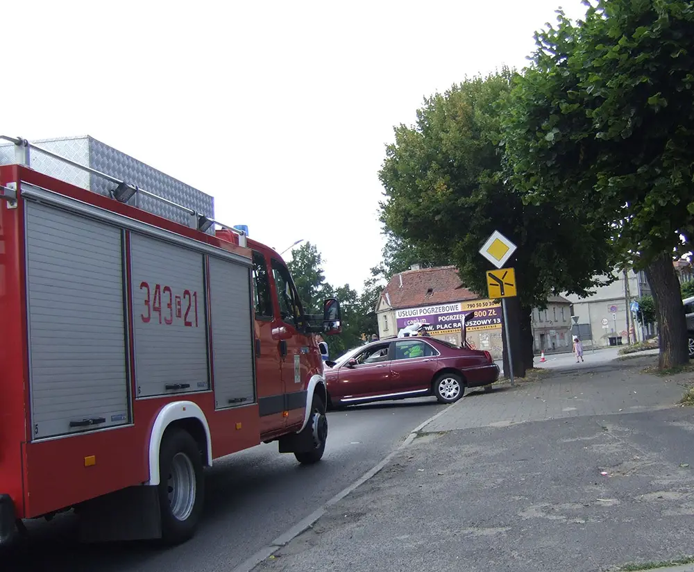 Kierujący roverem jechał ul. Okrężną. W pewnym momencie wpadł w poślizg. Samochód na poboczu rozbił się o drzewo. Na miejsce wypadku natychmiast przyjechały zaalarmowane służby ratunkowe. Strażacy zajęli się rozbitym roverem.
