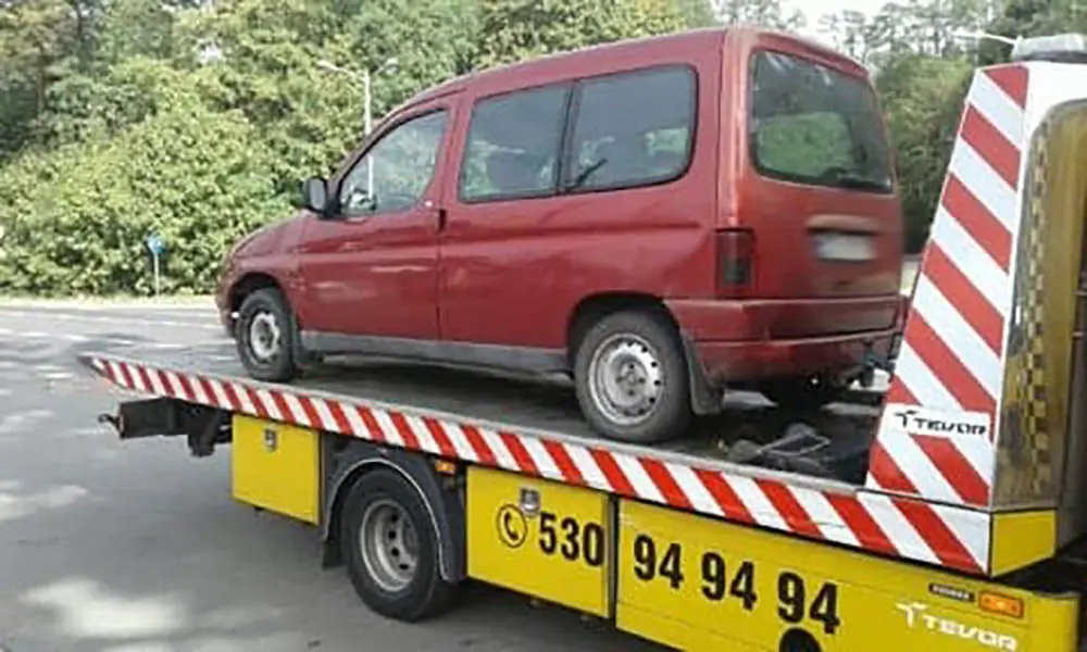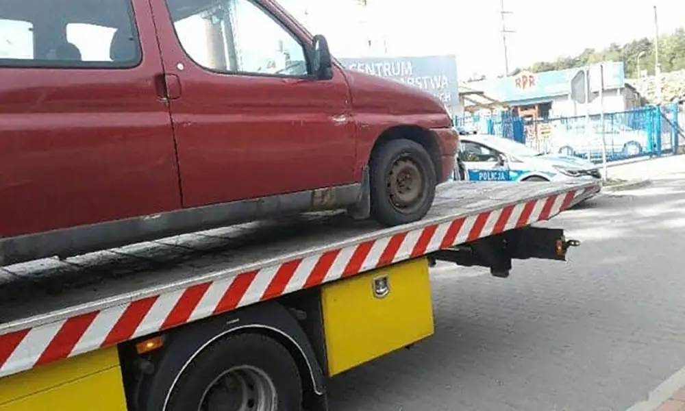 Citroena na polecenie policji na parking odholowała pomoc drogowa Maxmar. Koszty pokryje właściciel samochodu.