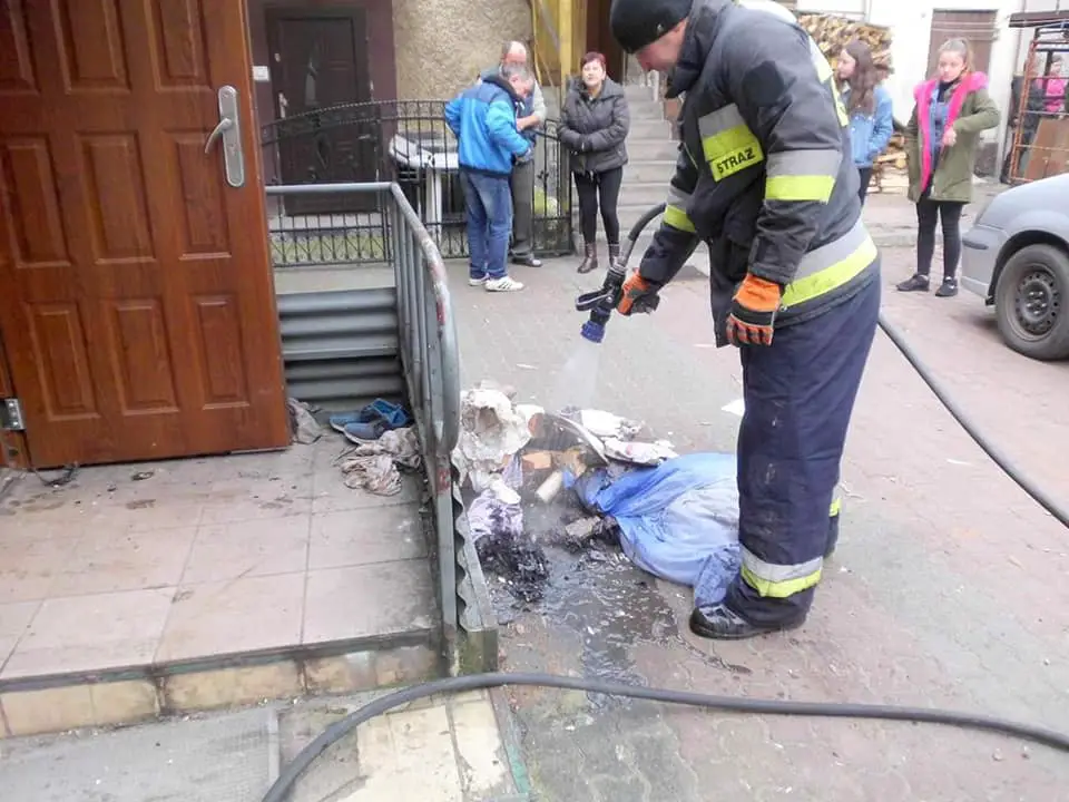 Natychmiast o pożarze została powiadomiona straż pożarna oraz policja. Zanim strażacy dojechali na miejsce, przygodne osoby wyprowadziły z mieszkania 63-letniego lokatora. Mężczyzna usiłował miską wody ugasić pożar mieszkania. Nie udało mu się.